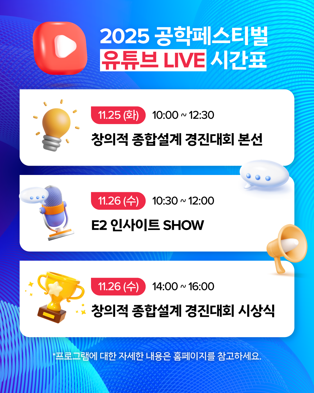 2. 2025 공학페스티벌 실시간 LIVE 시청 및 댓글 작성!